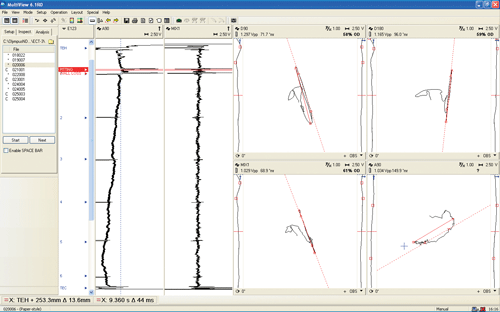 MultiView tube inspection acquisitions and analysis software provides voltage plane analysis, voltage plane theoretical curve, circumferential sizing overlay, calibration of three depth curves with only one reference point, voltage plane calibration without a support-plate signal and dual-driver software control. In addition, it offers offline cylindrical view, pit-depth measurement cursors, display of wall loss (%) and remaining wall, and real-time C-scan acquisition.